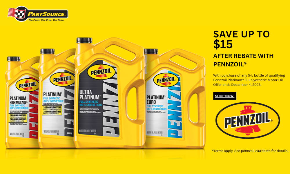 Product, service availability, and selection may vary by store. Please check your local store for availability. Sizes quoted are approximate. Some products may require assembly and delivery lead time. Regular prices shown are PartSource’s regular prices at which the products will be offered by PartSource as of October 2025. Regular prices in the flyer are PartSource’s suggested regular prices. Market conditions may cause prices to change without notice. Certain items may be subject to additional fees, or charges including environmental handling or disposal fees, which may vary by Province. For certain promotional items such as but not limited to hot buys, special buys, clearance and seasonal items and bonus with purchase items, shop early for best selection as no rainchecks or substitutes will be given. We reserve the right to limit quantities, to correct typographical, illustrative or pricing errors, and unless otherwise indicated, to offer substitute equivalent products, where advertised products are unavailable or in the event of advertising errors. Price Match Guarantee: PartSource will match any local competitor’s regular or advertised in-store Canadian retail price on an identical in-stock item at checkout or within thirty (30) days of purchase at a PartSource store. PartSource will only price match competitor brick and mortar retail locations that are within a radius of 20km from where price match is being requested within Canada. PartSource will not price match items which are the subject of typographical or advertising errors or misprints (e.g. Impact Wrench for $1.99), offers which require the purchase of more than one item or items which are the subject of free offers with the purchase of an additional product (e.g. Buy One Get One Sales), credit/financing program offers by competitors, items where price is only available when purchased using a proprietary form of payment (e.g. 10% discount when using competitor’s credit card), items where price is only available as part of a loyalty program, clearance sales after purchase, during special sales events (e.g. Black Friday, Cyber Monday), bankruptcy, clearance, or liquidation sales or any other sale where quantities are limited, used, damaged, refurbished, returned, open box or display merchandise, items from wholesale distributors or sales which are not available to the general public, scratch and save discounts or items which are the subject of mail in rebates, discounts offered for volume purchases in excess of average consumer end use, discounts or any other type of promotional offer made available by any party in connection with the sale of gift cards, ‘Spend and Get’ sales (e.g. Spend $200, get $20 gift card), discounts, gift certificates, coupons or credits of any kind offered by coupon issuers not actually providing the product or service, emergency automotive parts sourced from third parties, online only retailers based outside of Canada, or brick and mortar retail locations outside of Canada. The item must be identical, including the product features, applicable warranty, manufacturer, model number and size/volume. Whether or not an item is “identical” or from a “local competitor” is determined by the store at their discretion. PartSource’s price match guarantee may be modified or withdrawn at any time without notice. Quantities can be limited at the discretion of the store. Offers are while quantities last, no rainchecks will be given. 1Bonus wiper blade installation and windshield washer fluid top-up is only available with the purchase of a pair of new wiper blades at PartSource. Installation applies only to standard wiper blade installations that are compatible with the vehicle. Standard installation does not apply to oversized vehicles and/or vehicles requiring specialty installation. Windshield washer fluid may vary by store, and will be provided up to a maximum of 3.78L per vehicle. Subject to availability of store staff. See in-store for details. PartSource name, logos and trademarks are owned by Canadian Tire Corporation, Limited. All rights reserved.